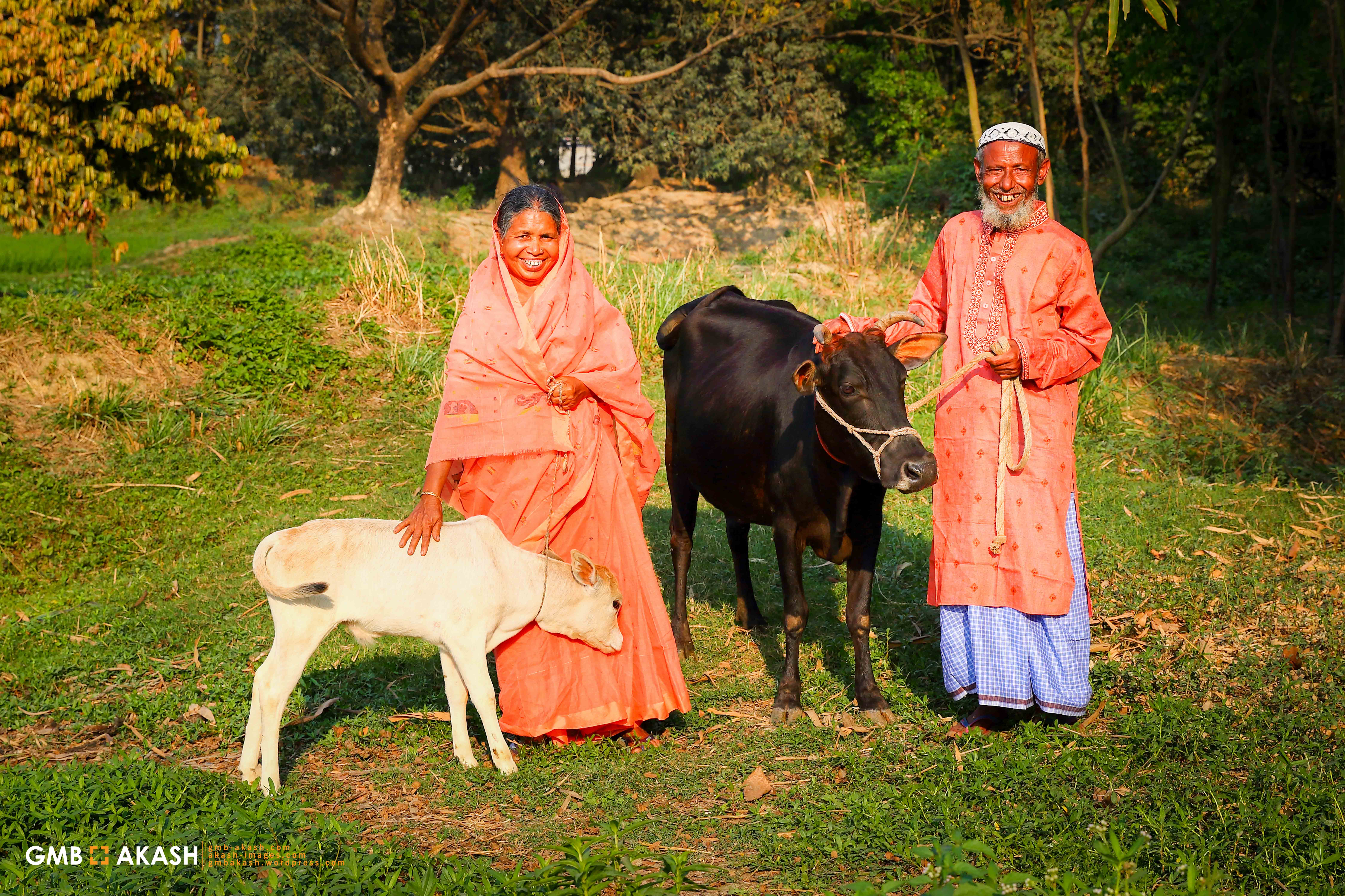By the grace of God, after arranging some money I met Uncle Sofur Uddin again to fulfill his wishes, and asked him what he can do to earn 300 taka per day in order to live a prosperous life with his wife. He told me he wishes to get a cow and a calf as he has an abandoned room where he is able to raise them and he could sell the milk in the local market and earn 300 taka per day.
