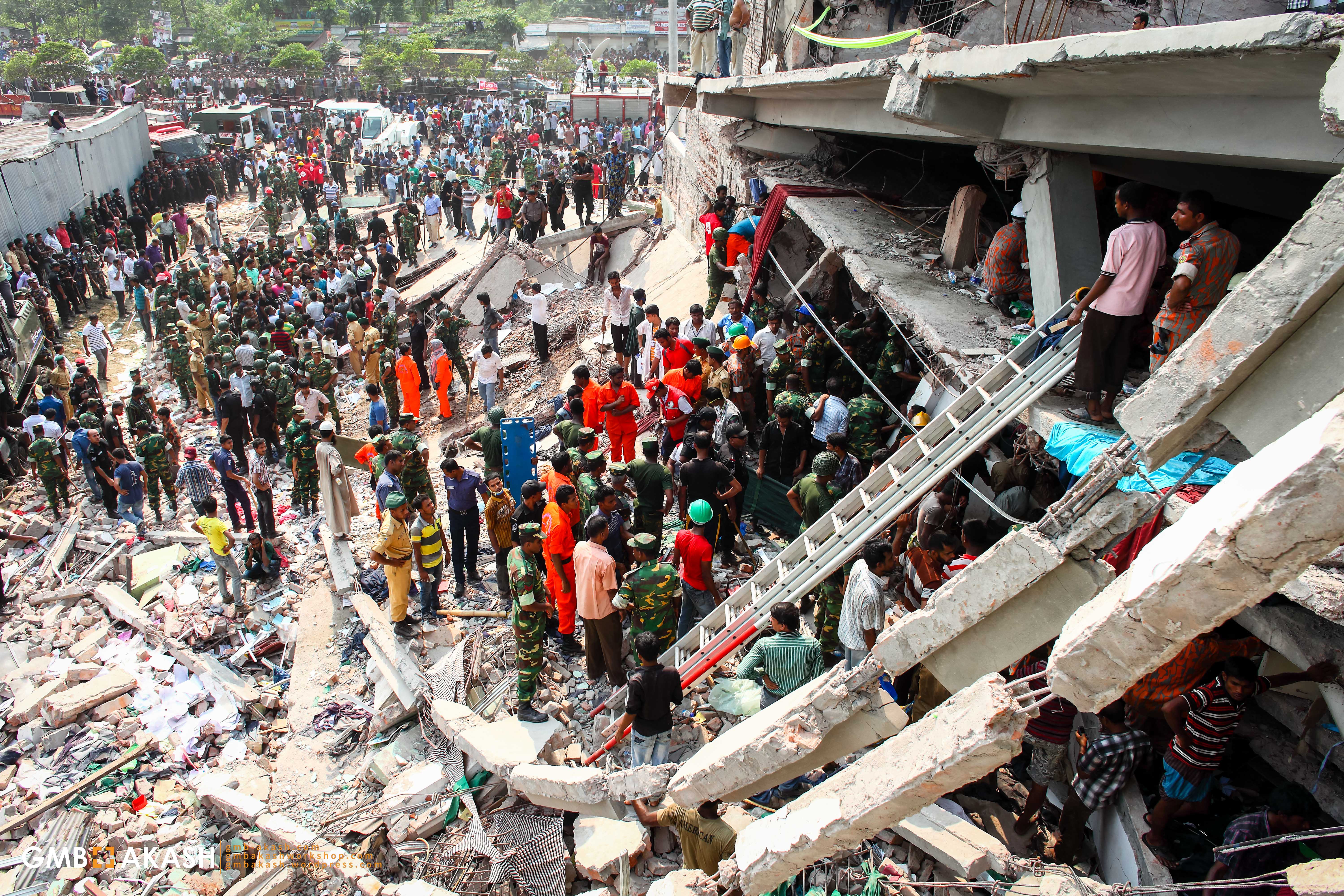 (The 2013 Dhaka garment factory collapse (also referred to as the 2013 Savar building collapse or the Rana Plaza collapse) was a structural failure that occurred on 24 April 2013 in the Savar Upazila of Dhaka District, Bangladesh, where an eight-story commercial building called Rana Plaza collapsed. The search for the dead ended on 13 May 2013 with a death toll of 1,134. Approximately 2,500 injured people were rescued from the building alive. It is considered the deadliest structural failure accident in modern human history and the deadliest garment-factory disaster in history.)