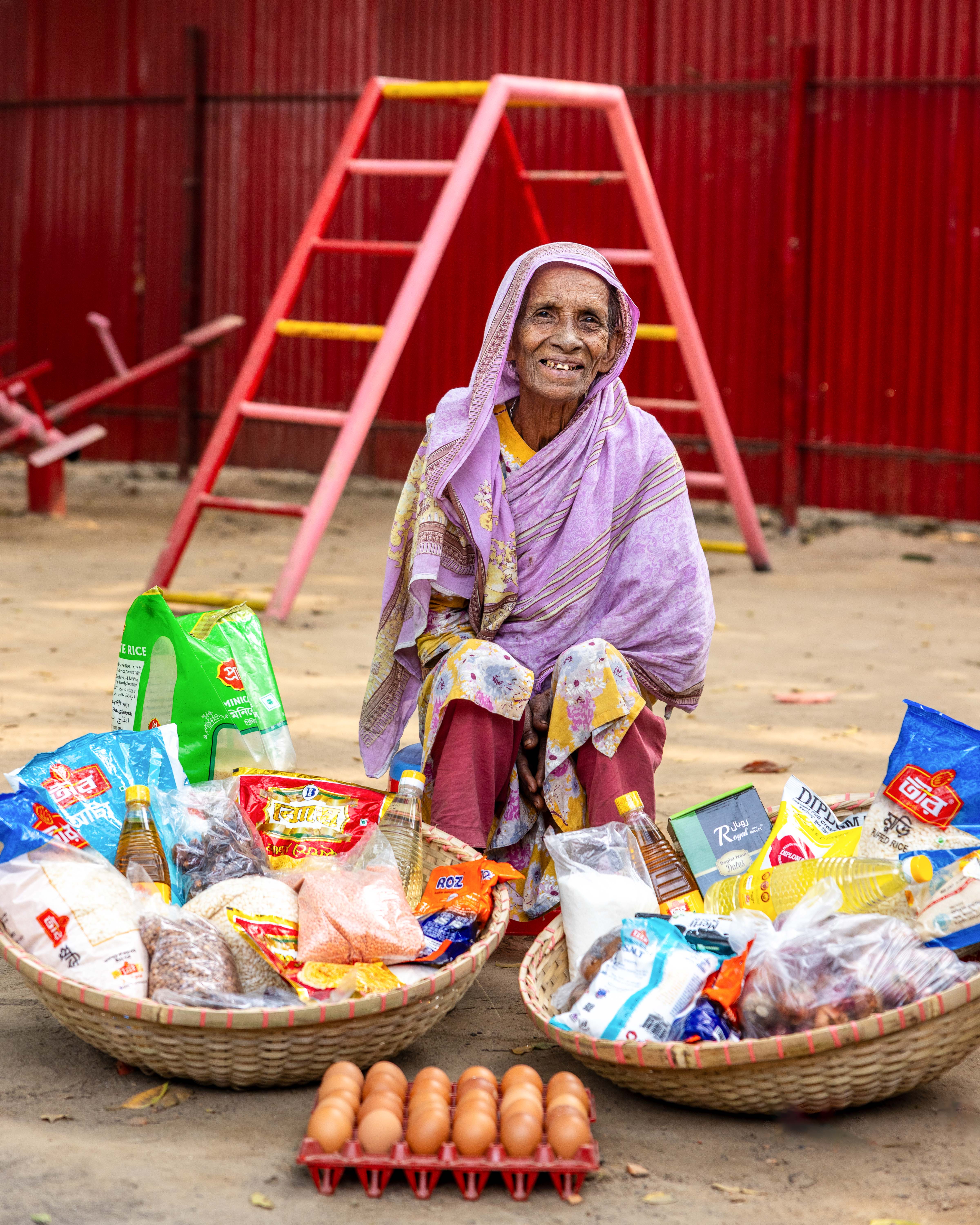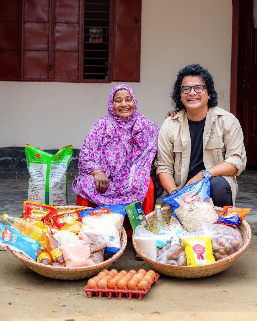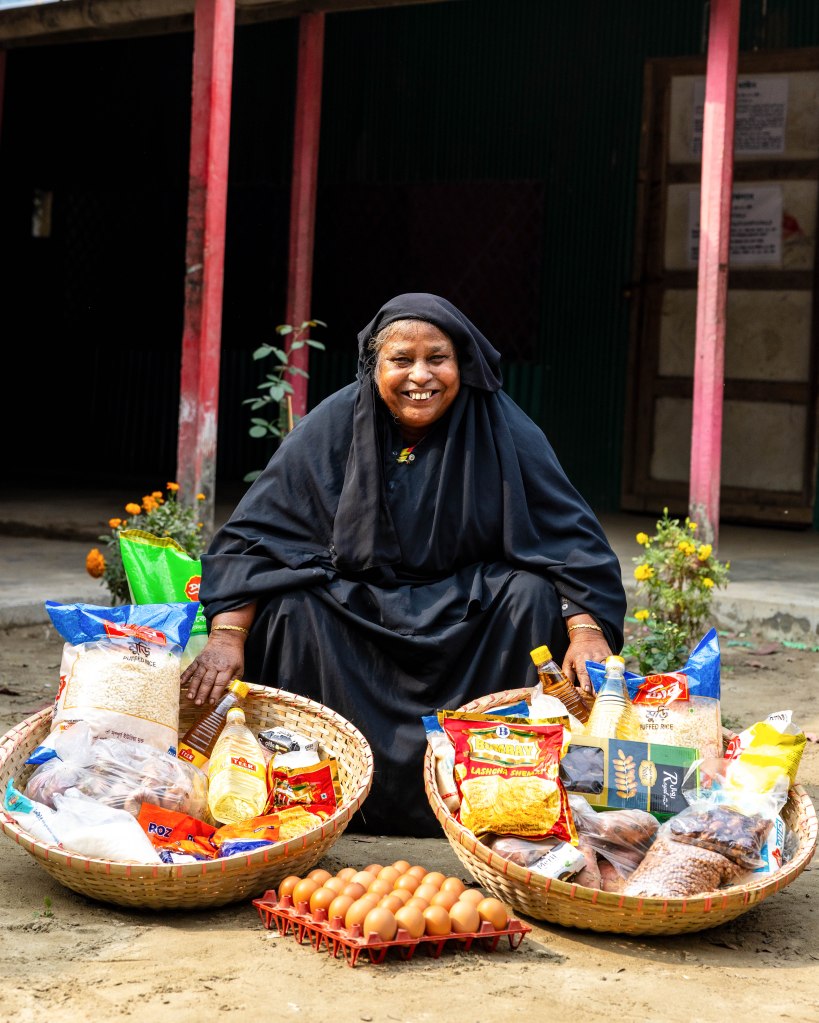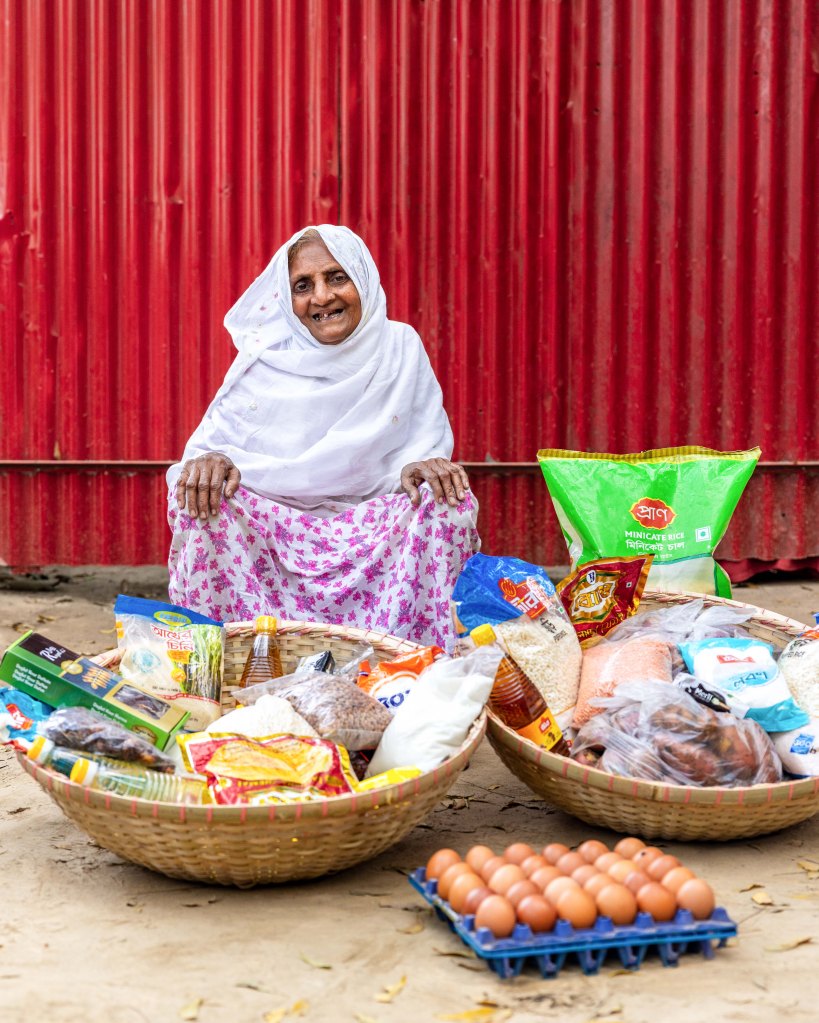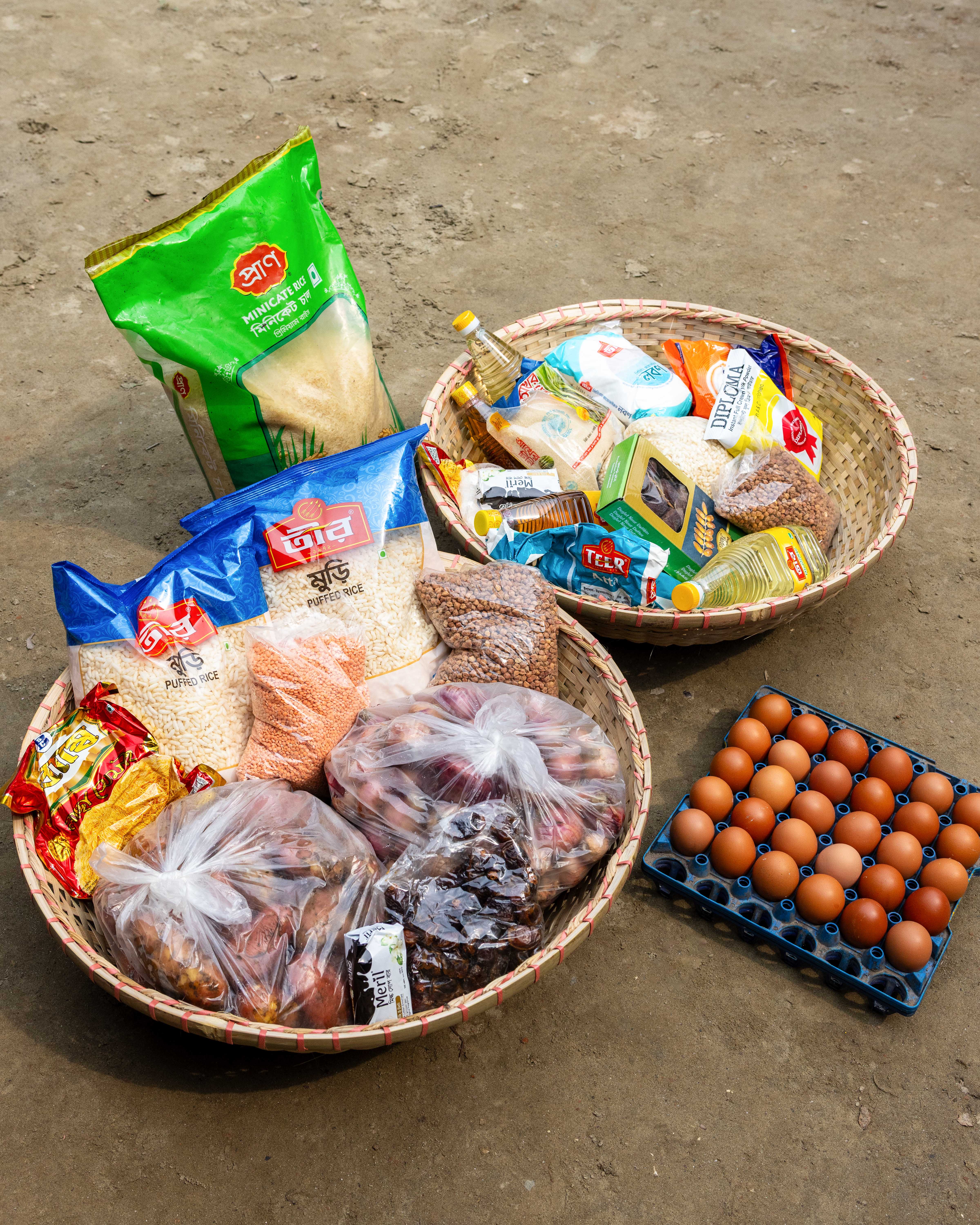 The food packages I provided include essential items for a healthy Ramadan: rice, lentils, sugar, milk, eggs, grains, cooking oil, salt, onions, potatoes, semai, dates, soap, washing powder, and more.