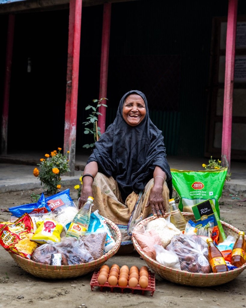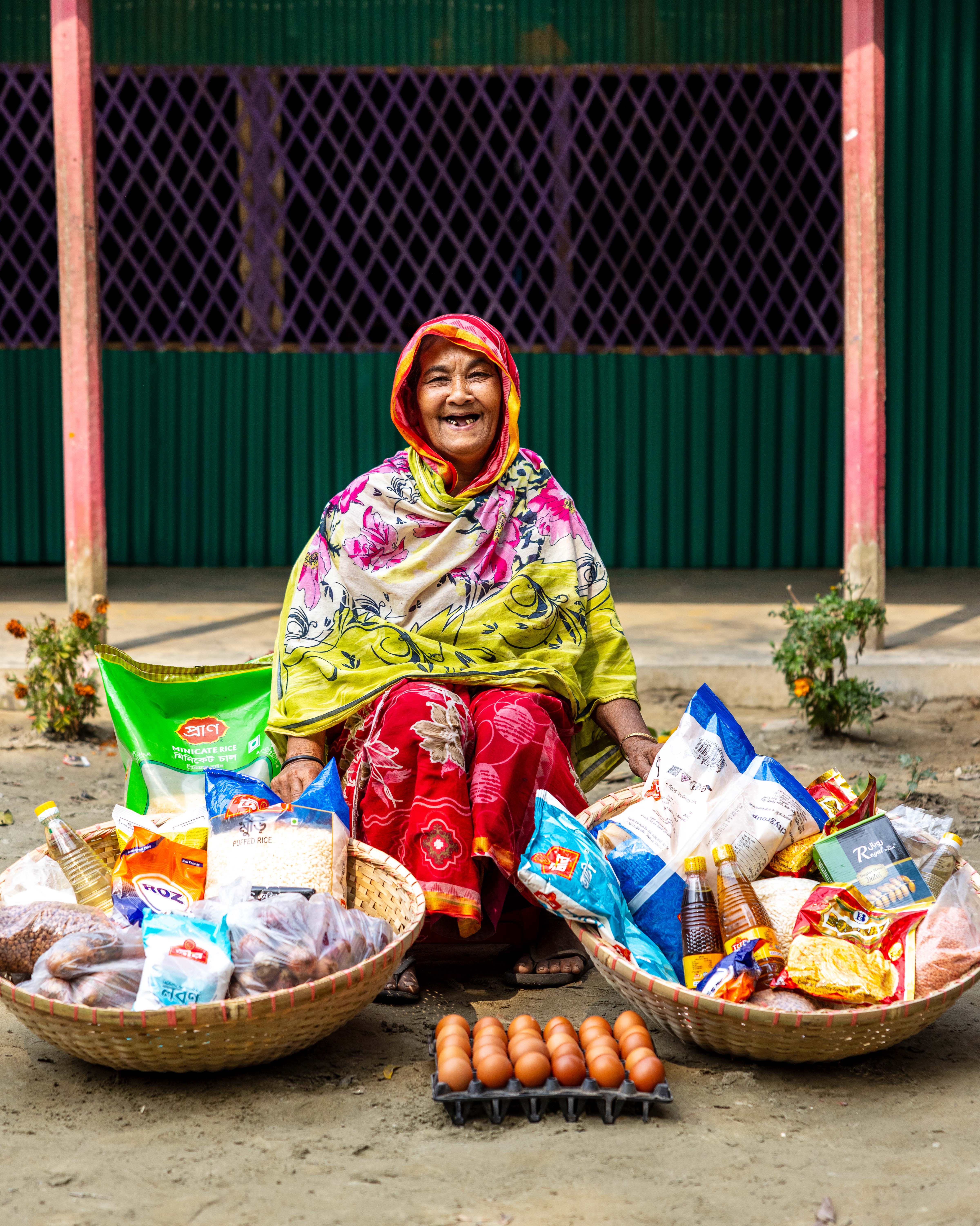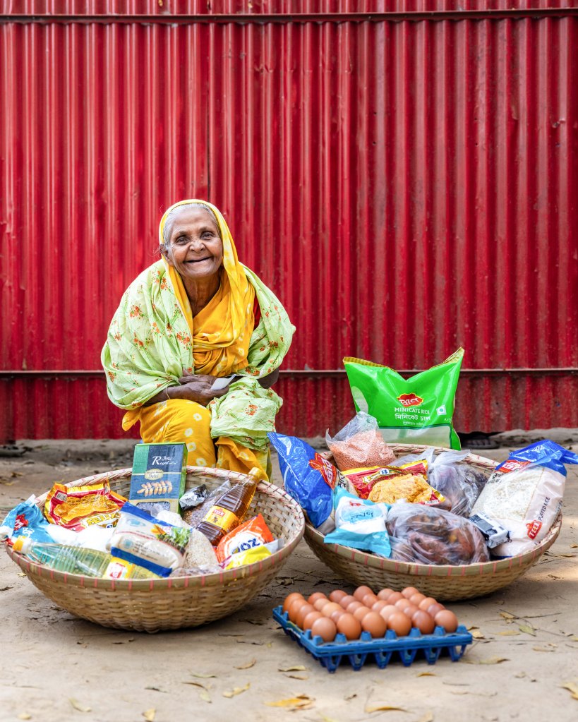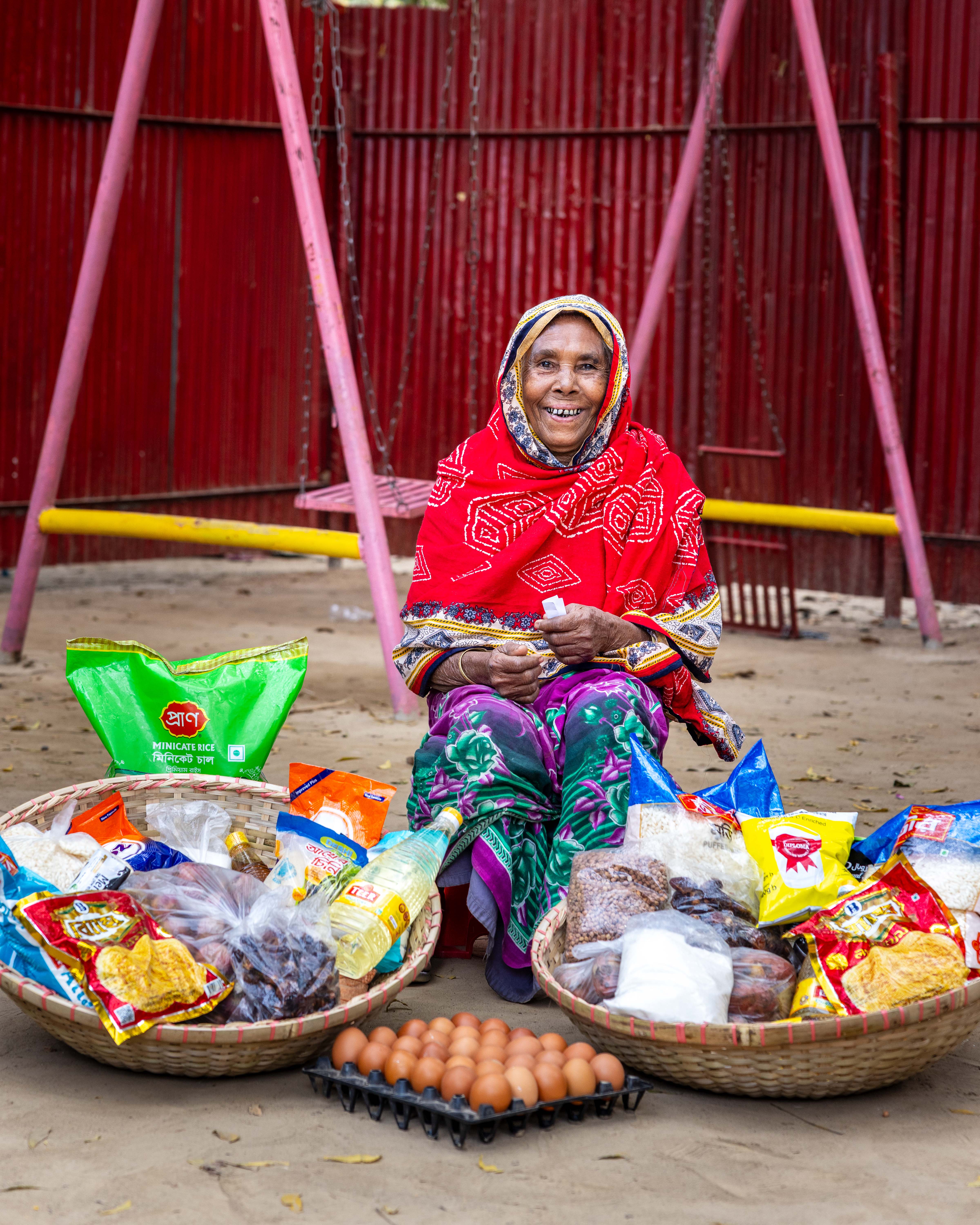 The food packages I provided include essential items for a healthy Ramadan: rice, lentils, sugar, milk, eggs, grains, cooking oil, salt, onions, potatoes, semai, dates, soap, washing powder, and more.