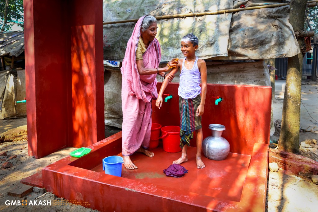 Rahima Begum said, “We have a big problem with water here. It’s hard to explain how bad it is. To give my daughter a bath, I have to walk a long way to fetch water or have to use dirty water from the pond. The daily struggle for water extends to basic necessities like drinking, cooking, bathing, washing clothes, and cleaning dishes. We struggle every day for every drop of water.”