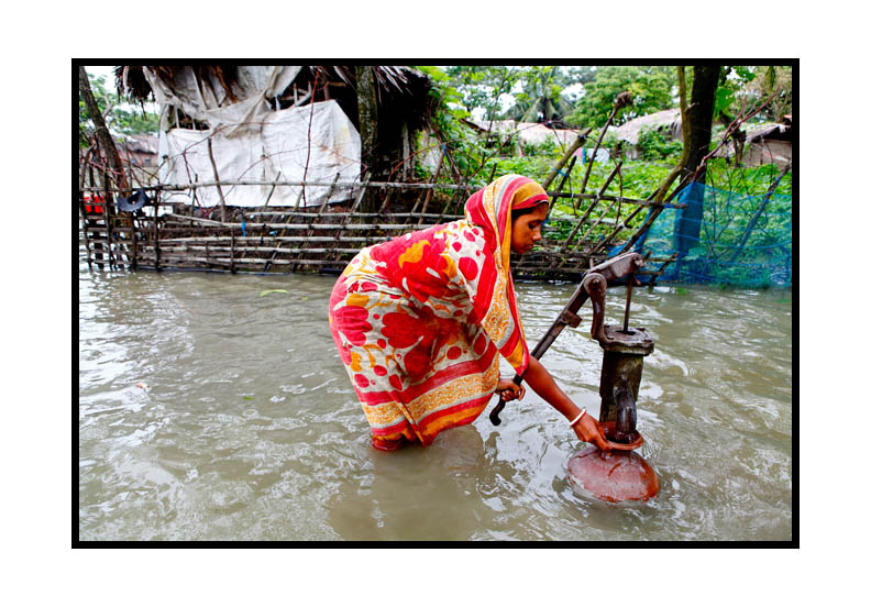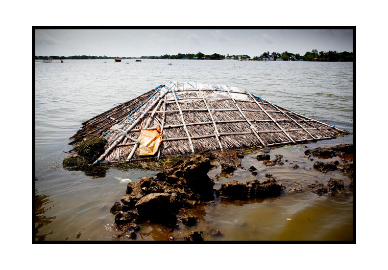 “I headed to the flood affected area of Shatkhira when all those villages were under water within three days & out of communication. Evidentially when I reached to Shamnagar sun was setting down. I was surviving in a boat & could not see surface to stand a while. With the drowning sun the village was drowning under water. People were sheltered above in roofs of their houses. Moaning of old people & shouts of children were making the atmosphere miserable. When I reached to the house of Khadeza Begum I closed my eyes. It took two years to rebuild the house of Khadeza after selling all her cattle as well taking huge loans after Aila attack in 2009. I was standing in front of her ruined house. The house which has been rebuilt these two years by the bravery of Khadeza. I could not answer when she was hitting me by asking why I come to take photo of her ruined house again after Aila. No one come to ask them ever how they are fighting against the will of nature. She cursed all those happy people who seat silent after hearing their news”