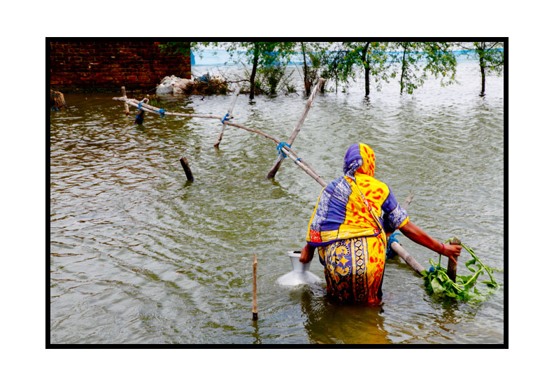 People were suffering like prisoner of devastating water kingdom.Helplessness & shouts are not getting into ears of rest of the people around the world & surroundings. Still they were fighting to live. They were collecting all destroyed pieces of house to shed their head. Women went to water for fishing. They were healing pain of each other set aside from the remaining world.
