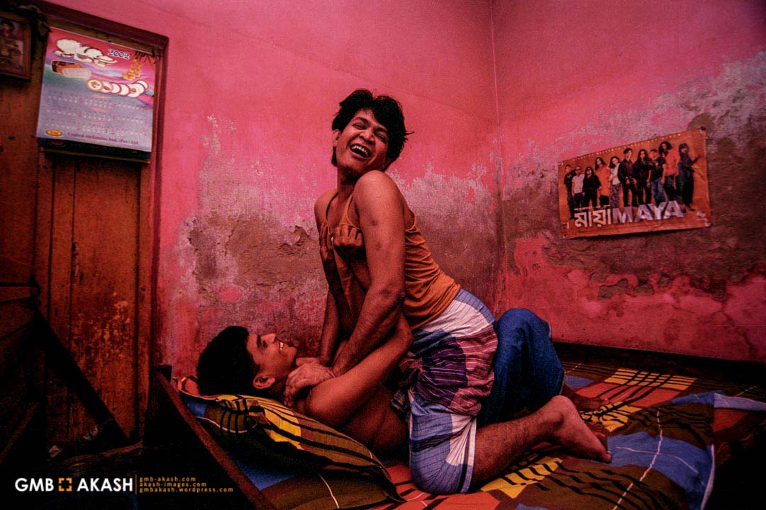 “Its been 12 years I am familiar to them. Not only as a photographer but also as a brother. In the photograph, I am seating with my one of the sister from Tangail brothel. Whenever I go there, she runs towards me by calling “Akash Bhai”, she brings sweet, tea and speaks and talked lot about her dreams. These girls are weak for affection as I once treated her as sister now she granted me as her brother. No one knows the story of those faceless girls who are sold by their boyfriend, husband or parents. This is one way journey to brothel a place that is everything to them. By documenting on them I would like to spread their story of pains which are only locked into their own madam’s castle. I can also recall about one girl from those uncountable faces. Unsurprisingly – and despite her name – Asha isn’t very hopeful for her own future. ‘I don’t think I’ll ever get married or have children,’ she says. ‘No one will marry me. If they did they’d only keep me for two or three days, and then they’d sell me back.’ She is more streetwise than some of the other girls here, many of whom share a tragic dream that one day a knight in shining Armour will arrive, to carry them off; then they will marry him, have his babies and love him forever. I wish there would be a knight in shining Armour will surly arrive, to carry them off from this living hell! I wish and I really wish!” – GMB Akash